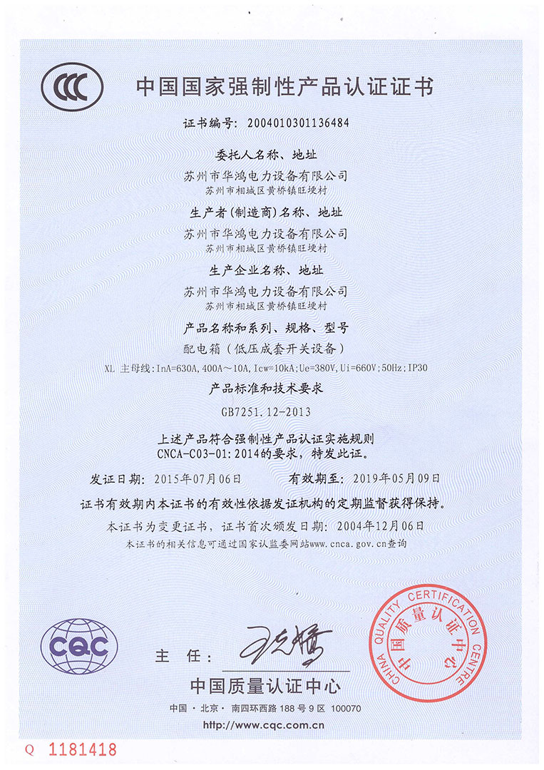 XL 強(qiáng)制性產(chǎn)品認(rèn)證證書(shū)