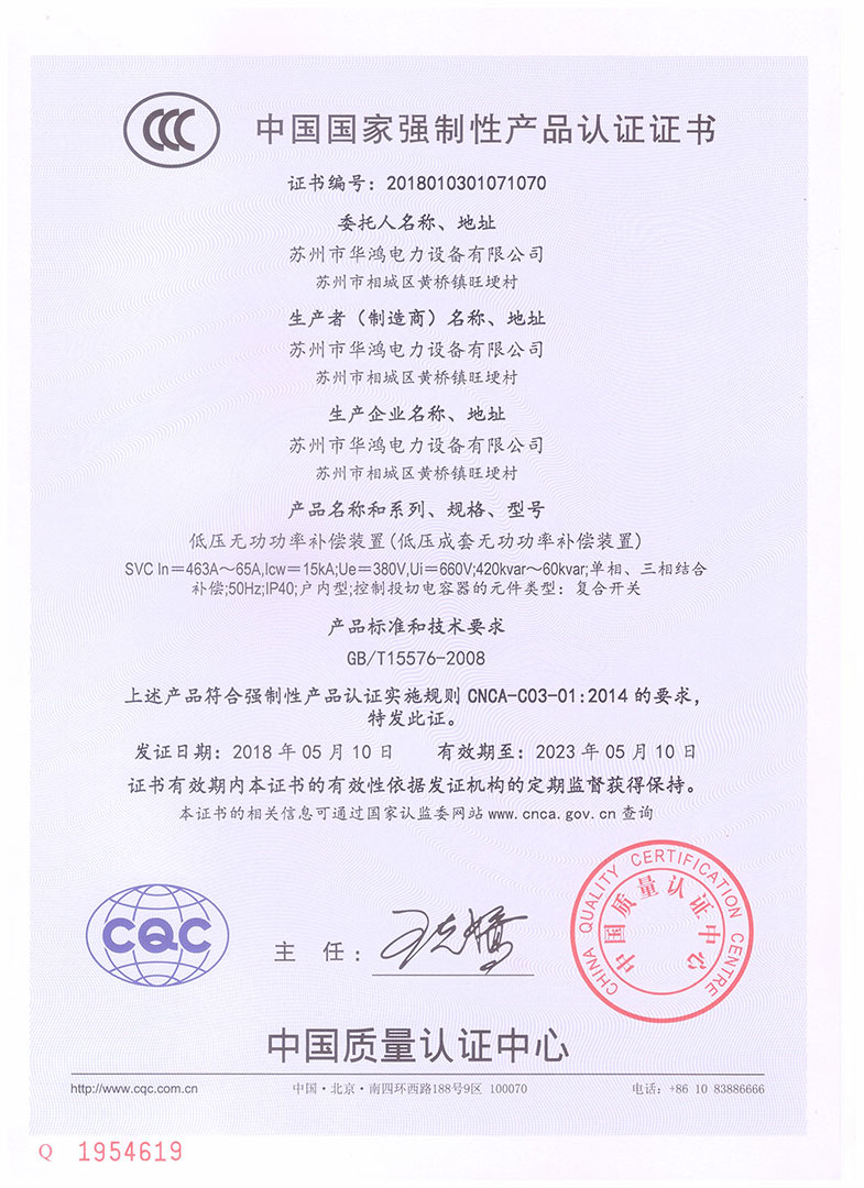 SVC 強(qiáng)制性產(chǎn)品認(rèn)證證書(shū)